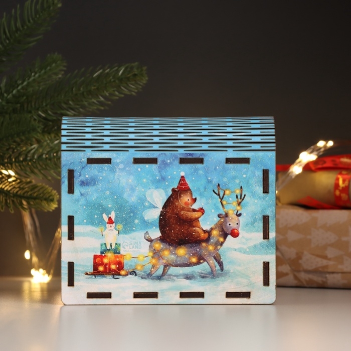 Новогодняя шкатулка-книга "Зверята" 14х12х5 см