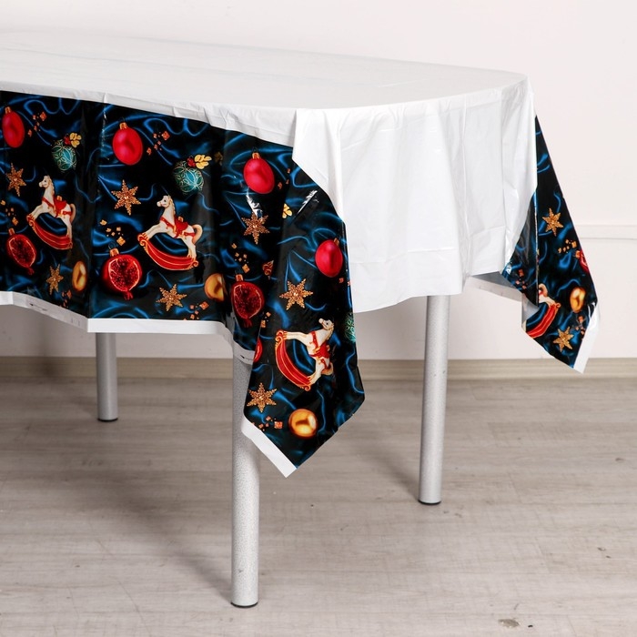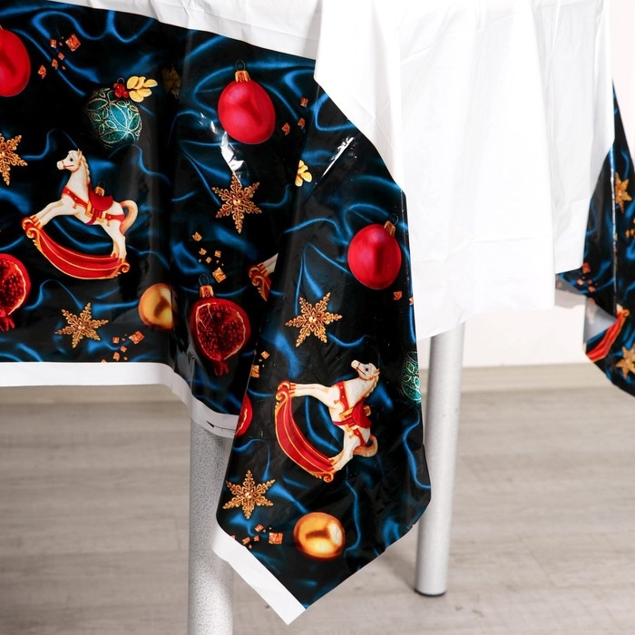 Новогодняя скатерть одноразовая «Праздничная», игрушки, 137х180см, на новый год