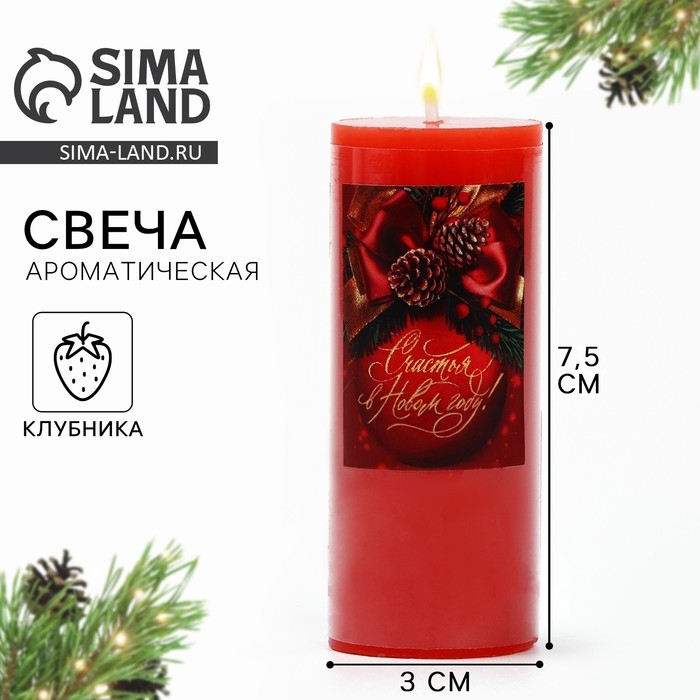 Новогодняя свеча-столбик интерьерная «Новый год: Счастья В Новом Году», клубника , 3 x 7,5 см