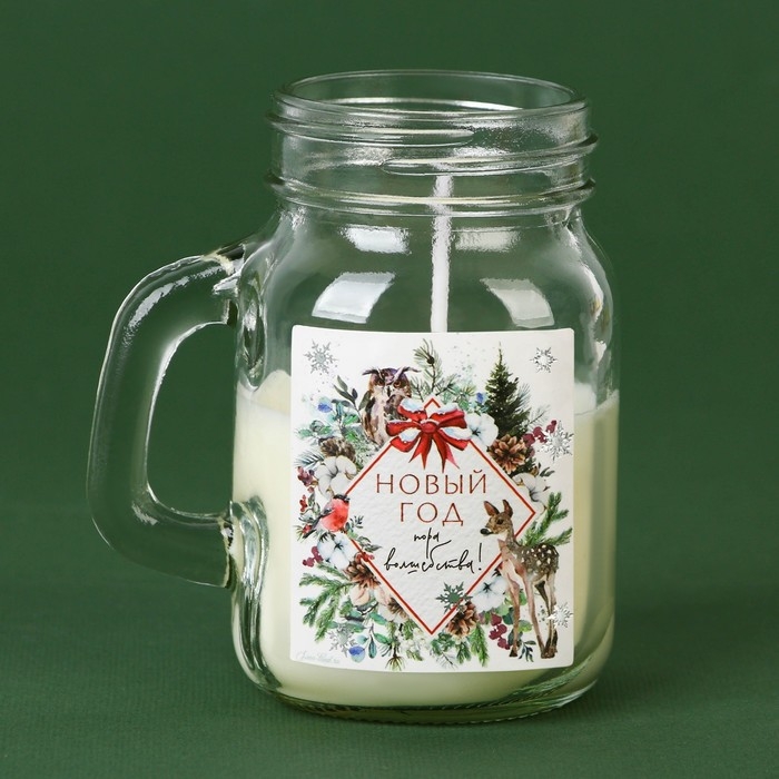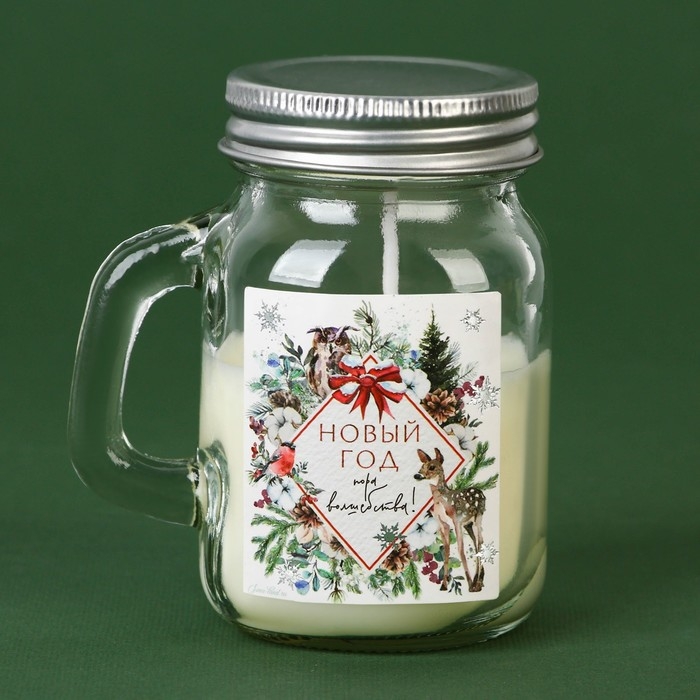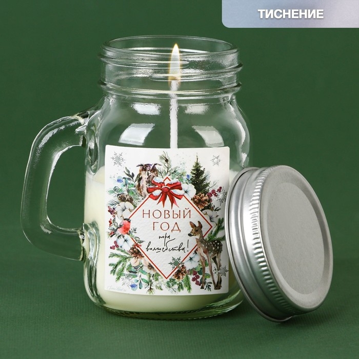 Новогодняя свеча в банке с ручкой «Новый год: Пора волшебства», аромат вишня
