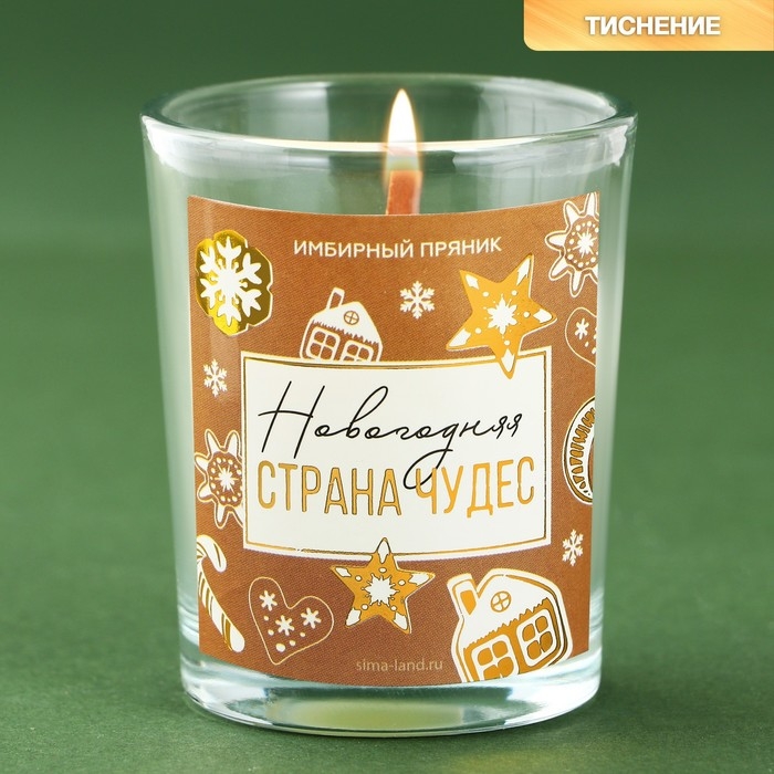 Новогодняя свеча в стакане с сюрпризом внутри «Страна чудес», аромат имбирный пряник