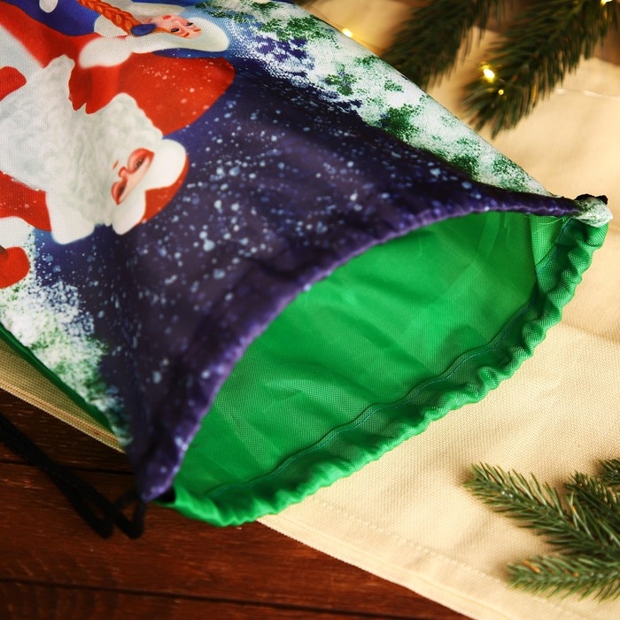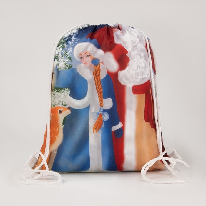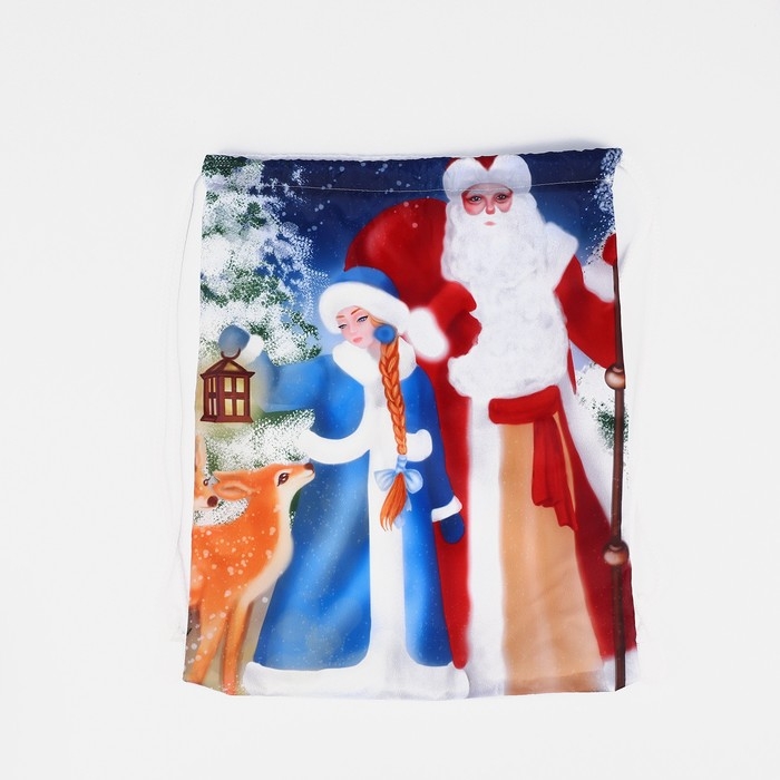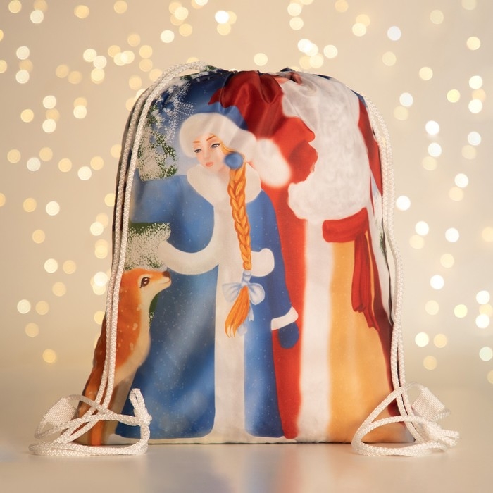 Новый год 2025. Новогодний мешок на шнурке «Дед Мороз и Снегурочка», цвет синий/разноцветный