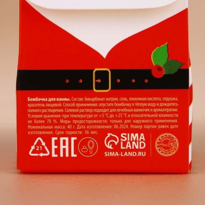 Новый Год. Бомбочка для ванны, 40 гр, аромат какао со сливками