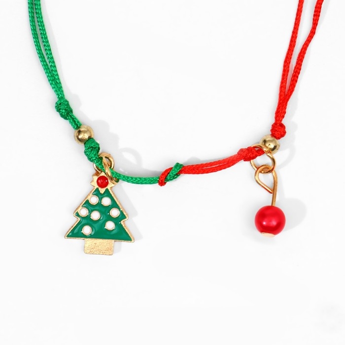 Новый год! Браслет «Ель» с бусинкой, цвет красно-зелёный, 6 см