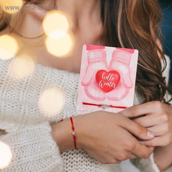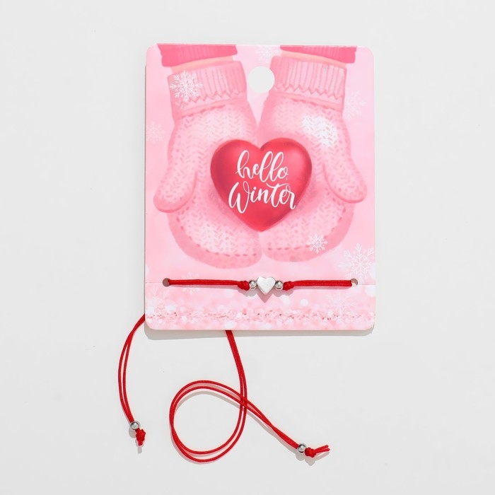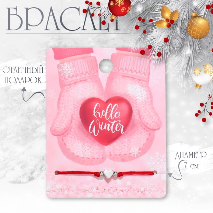 Новый год! Браслет «Сердце» варежки, сердце, цвет красный с серебром, 7см