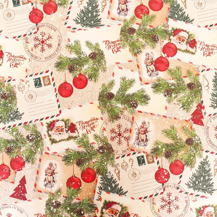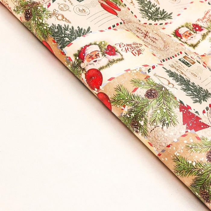 Новый год. Бумага упаковочная новогодняя крафт белый "Письмо Деда Мороза!", 70 х 100 см.