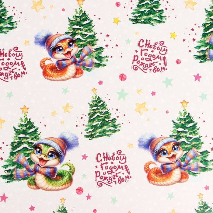 Новый год. Бумага упаковочная новогодняя "С Новым Годом и рождеством", глянец, двусторонняя, 70 х 100 см.