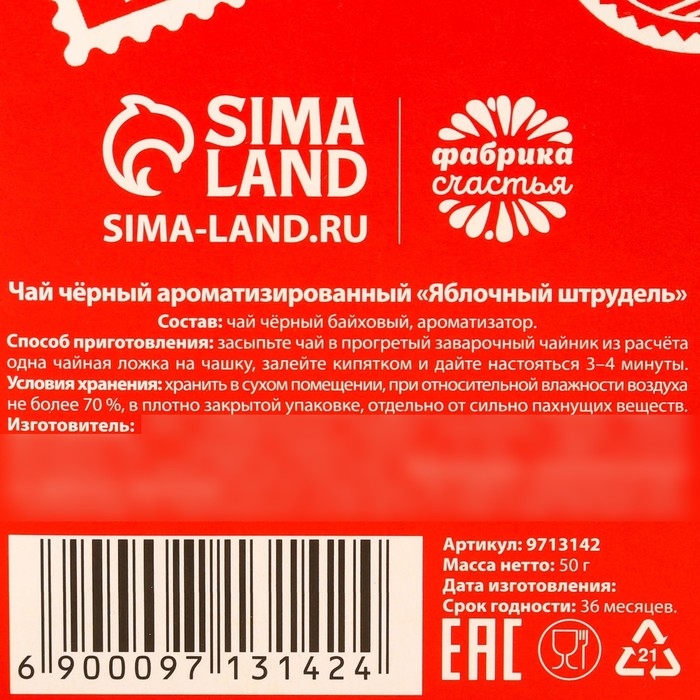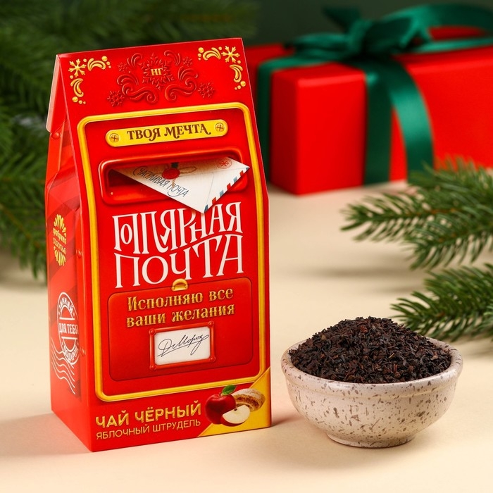 Новый год! Чай чёрный «Почта», вкус: яблочный штрудель, 50 г.