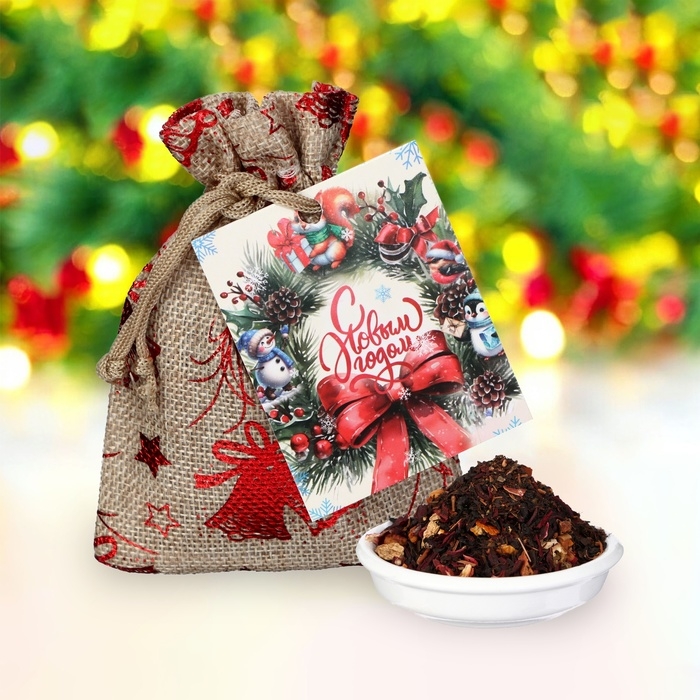 Стильный и лёгкий мешочек для подарков выполнен из прочного, качественного материала. Кроме чая в новогодний мешочек можно положить сладости, конфеты, косметику, парфюмерию или другие сюрпризы.