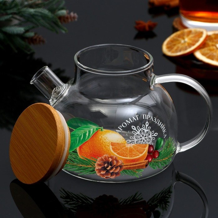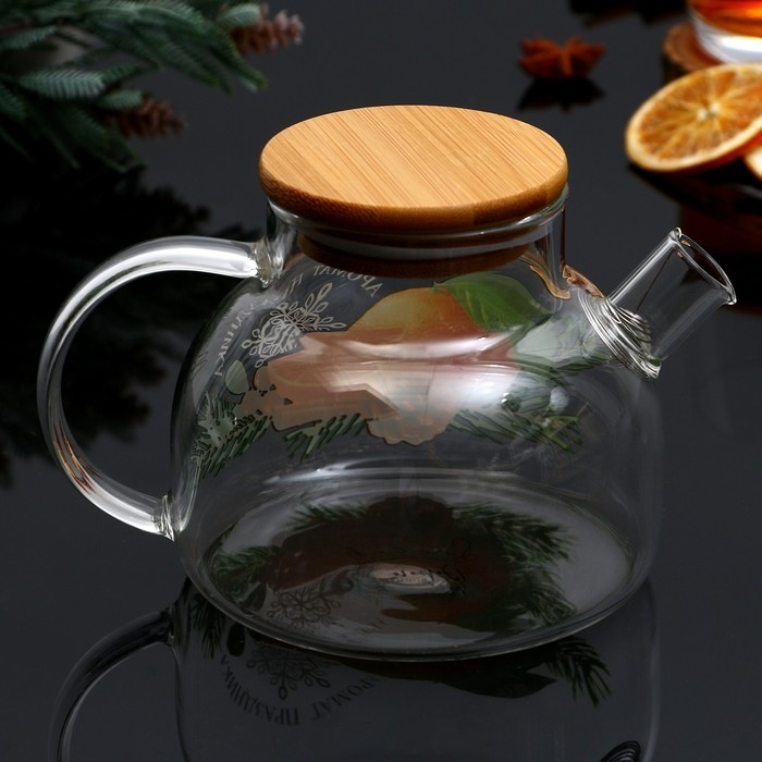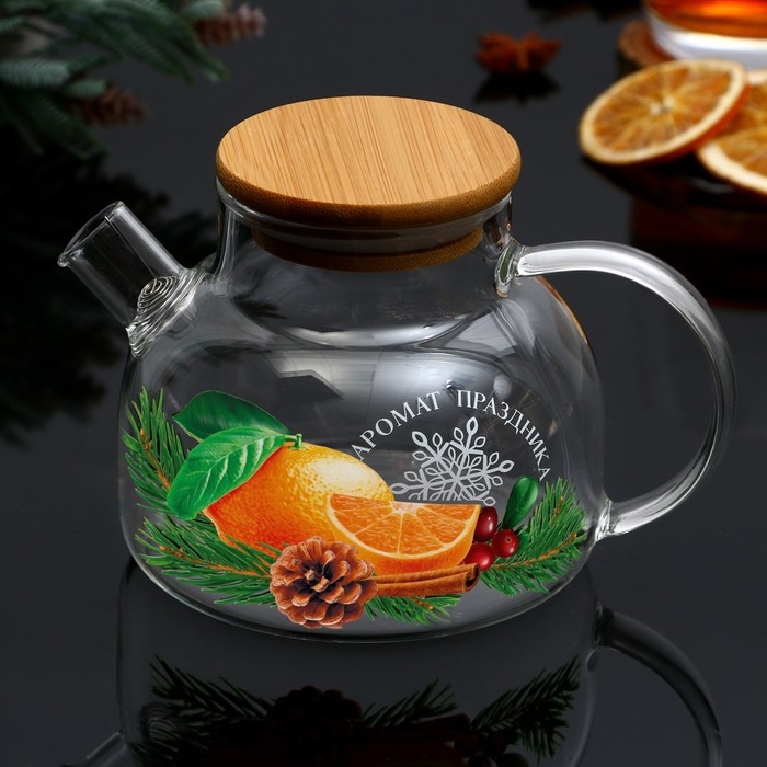 Новый год. Чайник заварочный стеклянный с бамбуковой крышкой «Аромат праздника», 600 мл