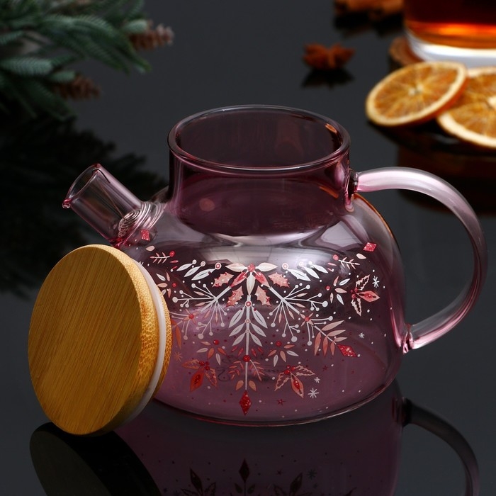 Новый год. Чайник заварочный стеклянный с бамбуковой крышкой «Розовая сказка», 600 мл