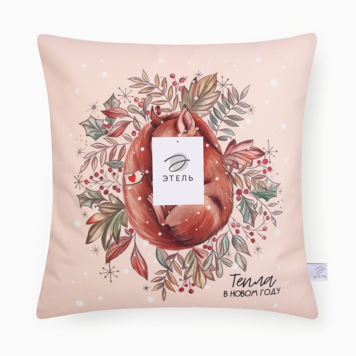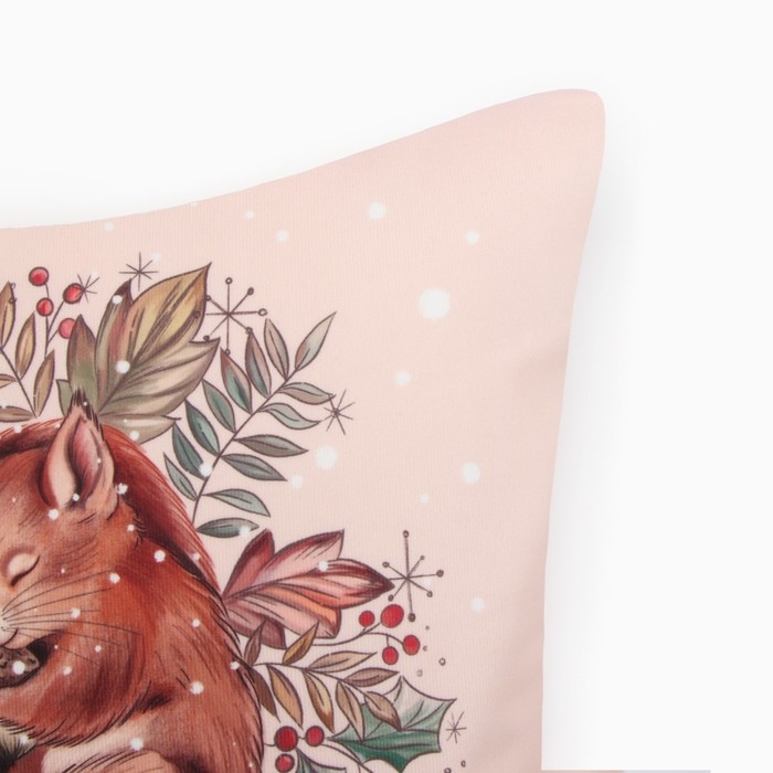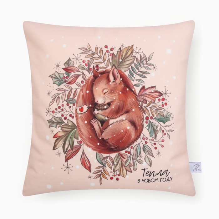 Новый год. Чехол на подушку Этель "Белочка" 40*40 см, 100 п/э, велюр
