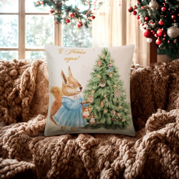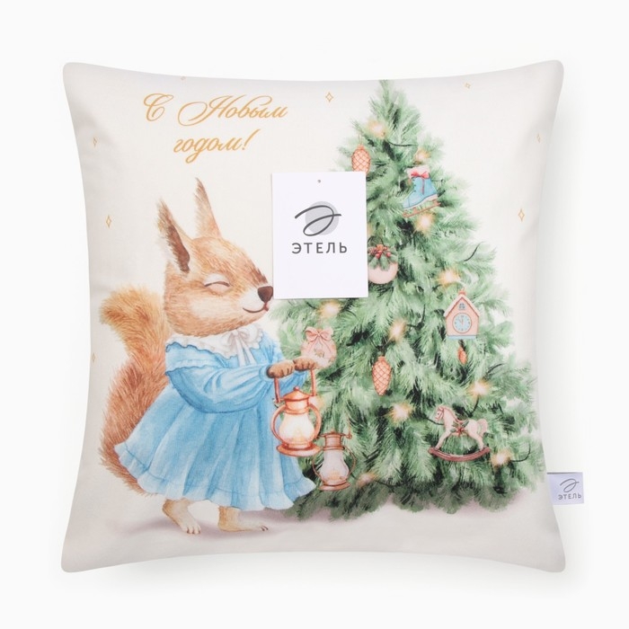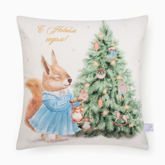 Новый год. Чехол на подушку Этель "Белочка", 40*40 см, 100 п/э, велюр
