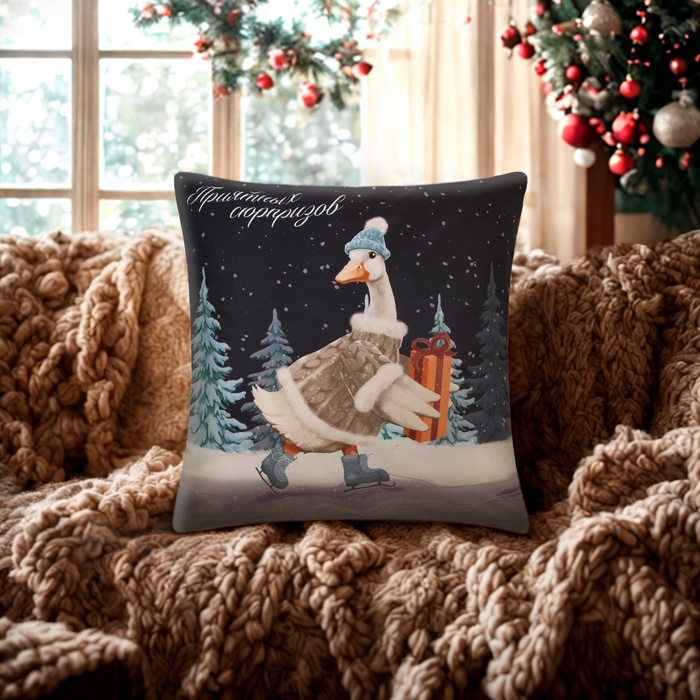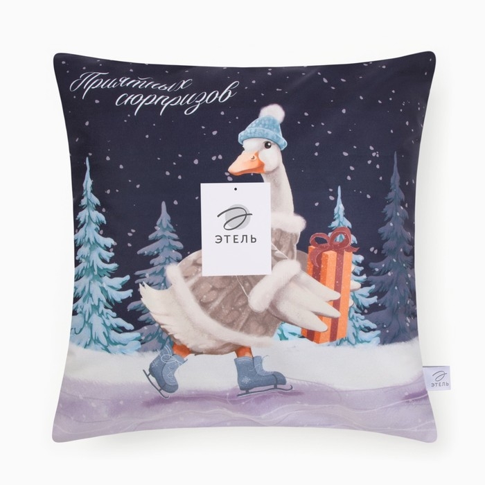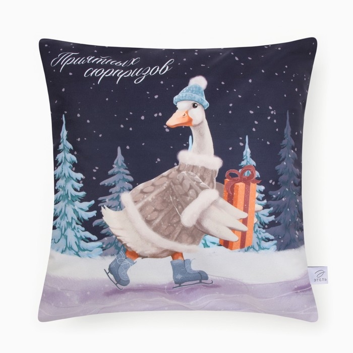 Новый год. Чехол на подушку Этель "Приятных сюрпризов", 40*40 см, 100 п/э, велюр