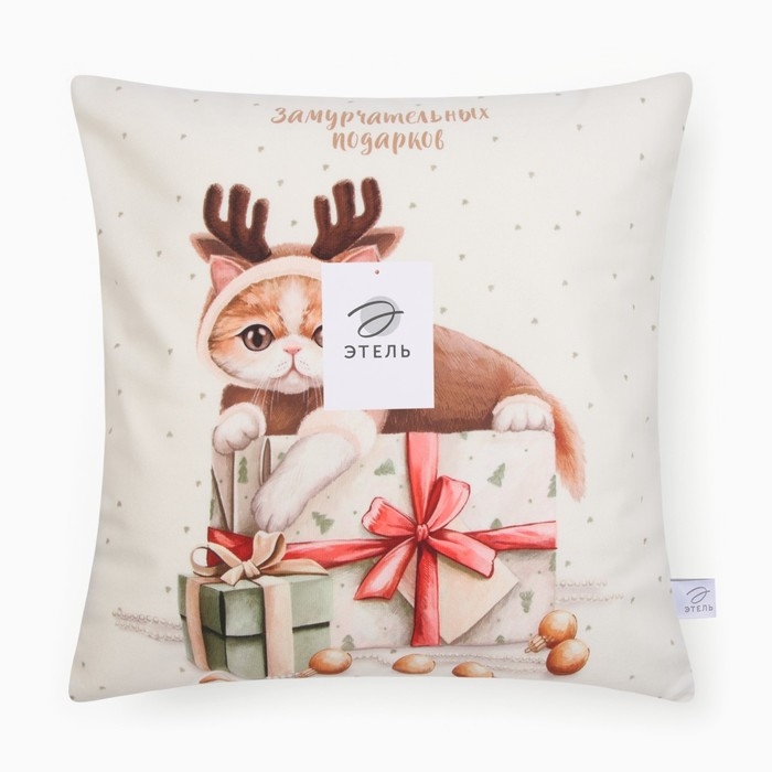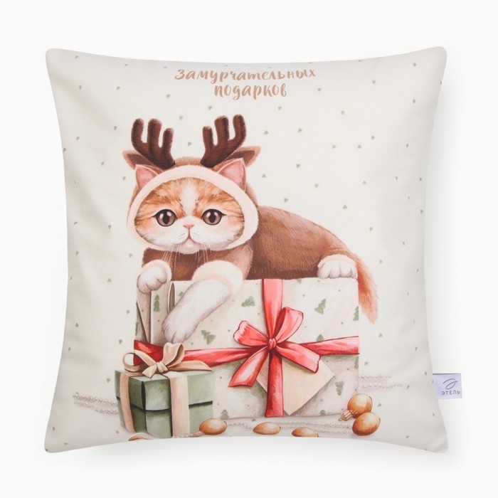Новый год. Чехол на подушку Этель "Замурчательных подарков", 40*40 см, 100 п/э, велюр