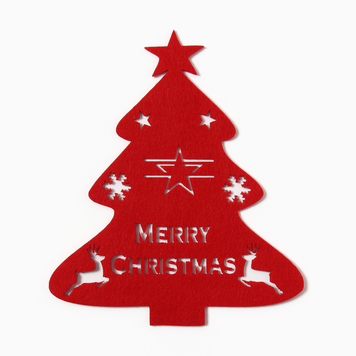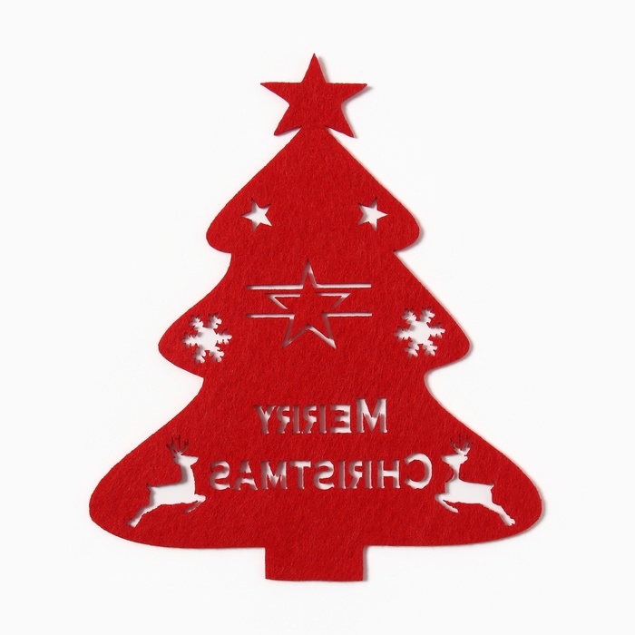 Новый год.Декор столовых предметов "Елка" цв.красный 20х17см 100%п/э, фетр