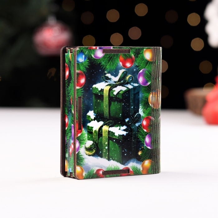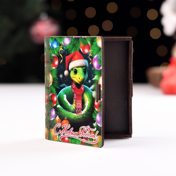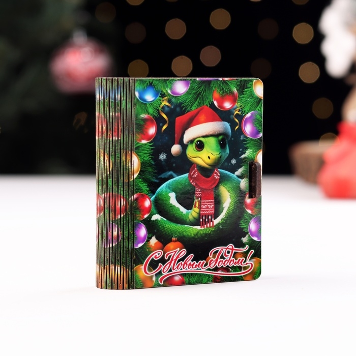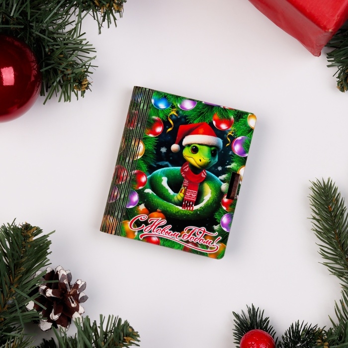 Новый год. Деревянный конверт для денег с символом года № 3 "Змейка в шапке с мандаринами", 9,8х8,5х