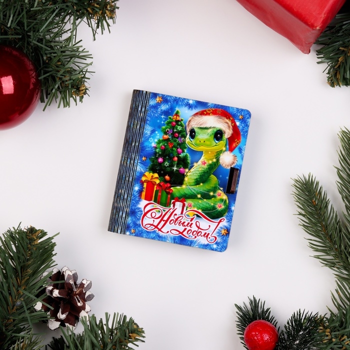 Новый год. Деревянный конверт для денег с символом года № 6 "Змея с елкой", 9,8х8,5х2 см