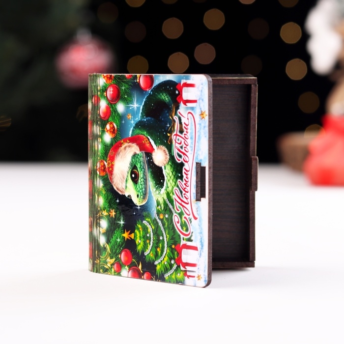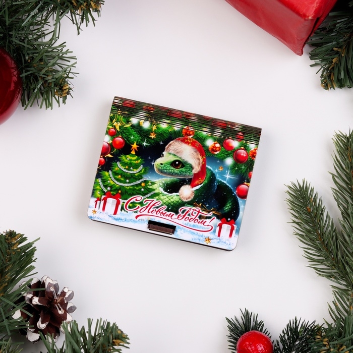 Новый год. Деревянный конверт для денег с символом года № 8 "Змейка в колпаке", 9,8х8,5х2 см 1066018