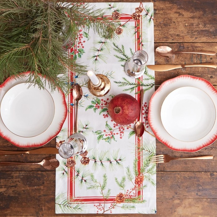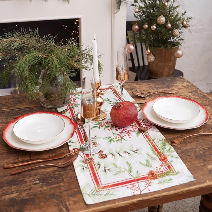 Новый год. Дорожка на стол новогодняя "Этель" Новогодние листья 30х70 см, 100% хл, саржа 190 гр/м2