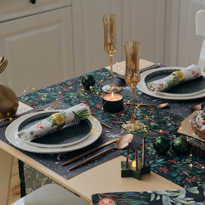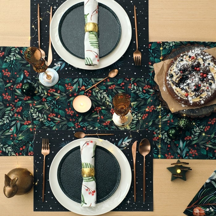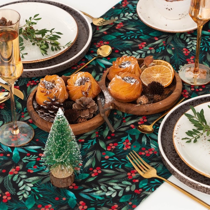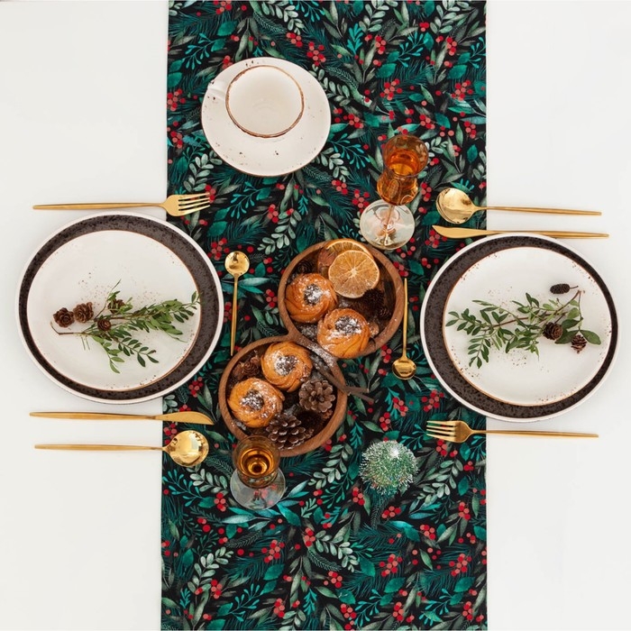 Новый год. Дорожка на стол новогодняя Этель "Winter berry" 40х147см, 100%хл, саржа 190 г/м2