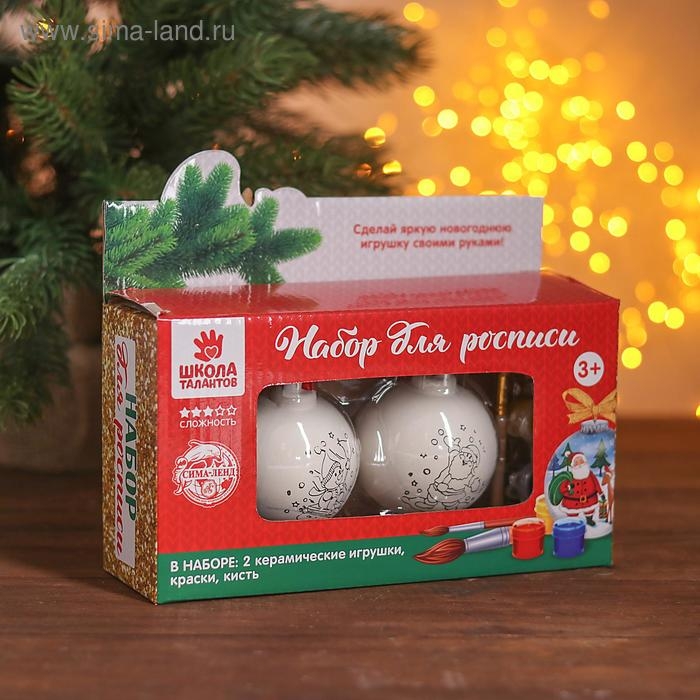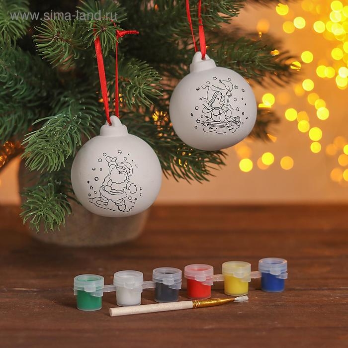 Новый год! Ёлочные шары под роспись «Дедушка Мороз и Снеговик», 2 шт., с подвесом, краска 6 цв. по 2 мл, кисть