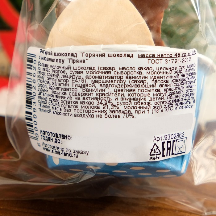Новый год. Фигурный шоколад "Горячий шоколад с маршмеллоу "Пряня", 48 г