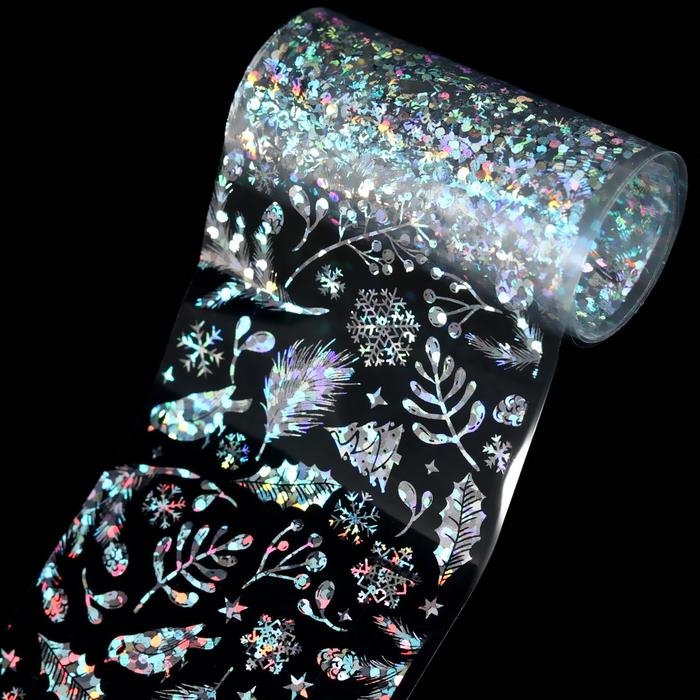 Новый год! Фольга для ногтей «Ветви и снегири», переводная, 4 × 50 см, голография