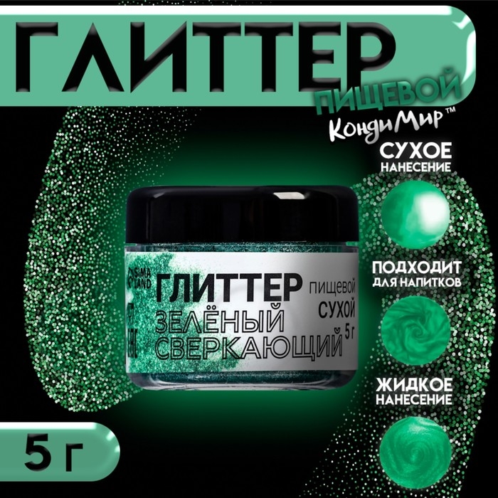 Пищевые глиттеры не имеют вкуса и запаха, а значит не меняют вкуса и аромата готовых кондитерских изделий. Данный продукт плотный и отлично покрывает как твердые поверхности, так и изделия с жидкой текстурой. Подойдет для продуктов любой температуры. Краситель на 100% съедобен. Окрашивайте готовые изделия, напитки, элементы декора, а также глазурь, айсинг, желе, мармелад, карамель.