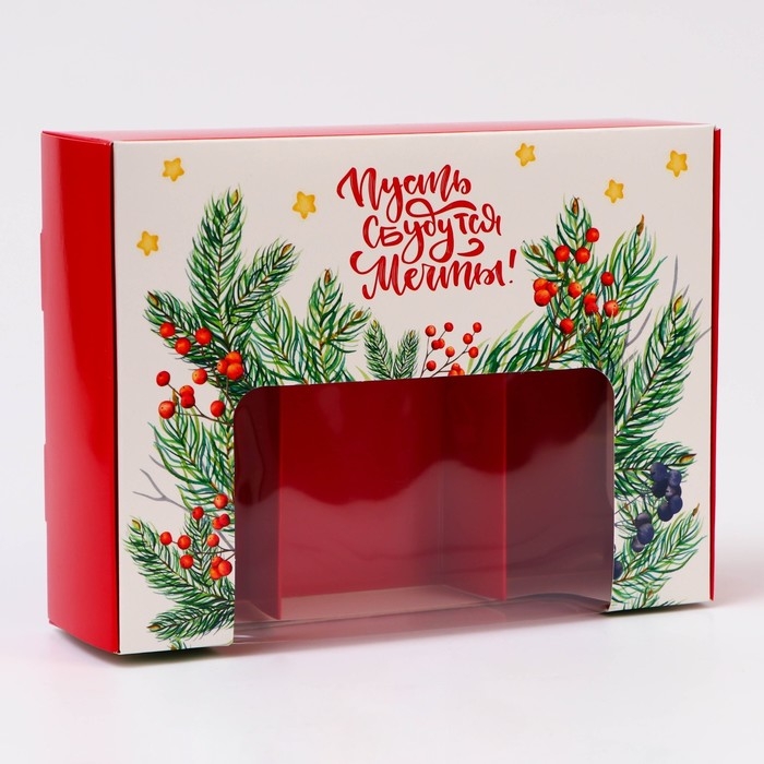 Новый год. Кондитерская упаковка под 3 эклера "Пусть сбываются мечты", 20 x 15 x 6 см