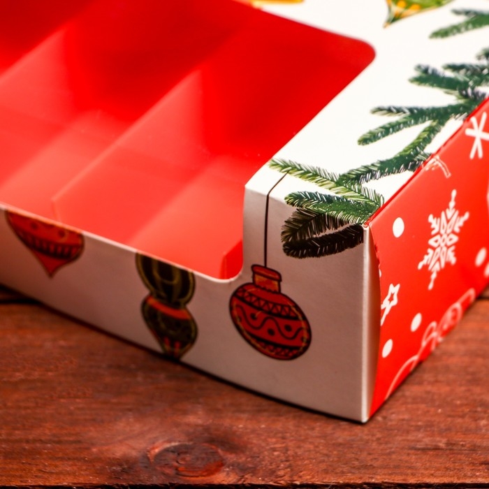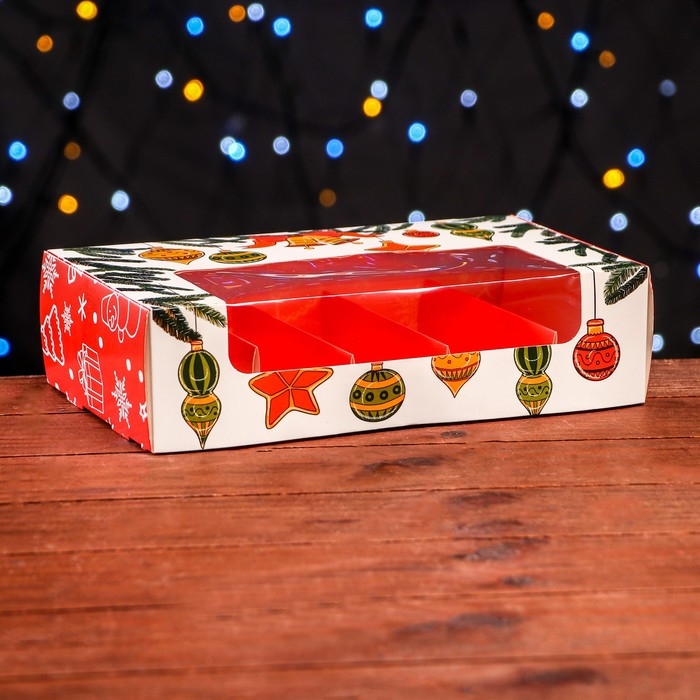 Новый год. Кондитерская упаковка под 5 эклеров "Праздничное настроение", 25,2 х 15 х 6,6 см