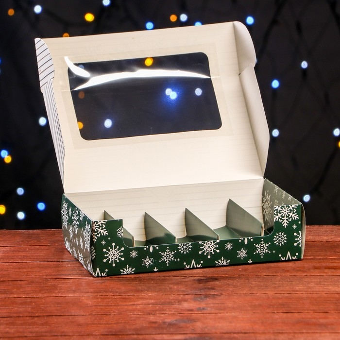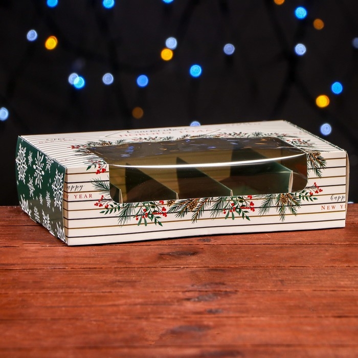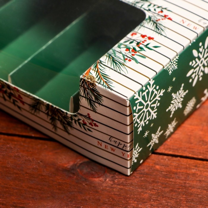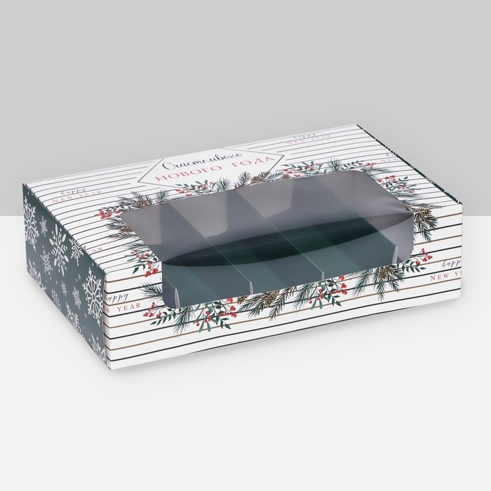 Новый год. Кондитерская упаковка под 5 эклеров "Счастливого Нового года", 25,2 х 15 х 6,6 см