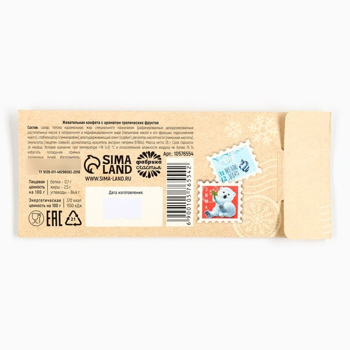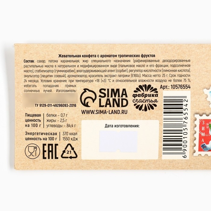 Новый год! Конфеты жевательные, со вкусом тропических фруктов «Доставка настроения», 1 шт х 25 г