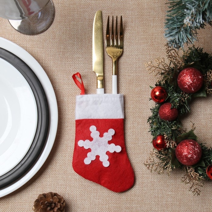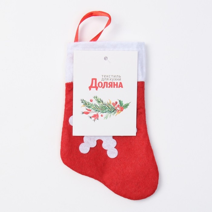 Новый год. Конверт для столовых приборов Доляна "Рождественский носок", 14х7 см