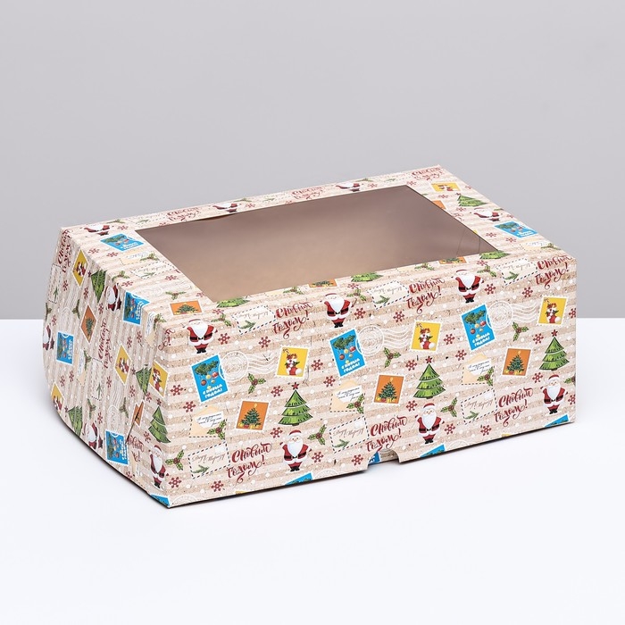 Новый год. Коробка для 6 капкейков с окном подарочная новогодняя упаковка, "Новогодняя почта", 25 х 17 х 10 см.