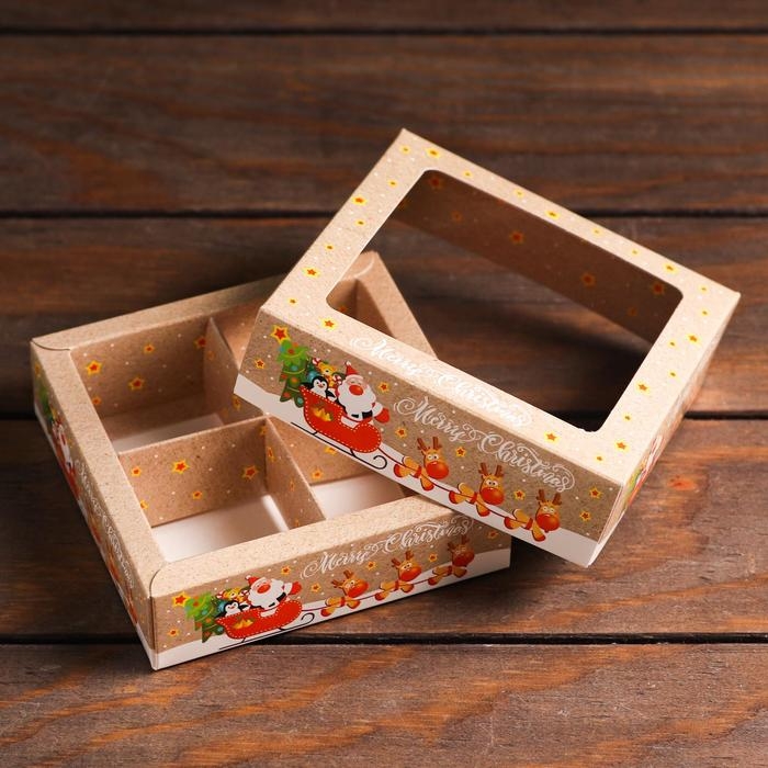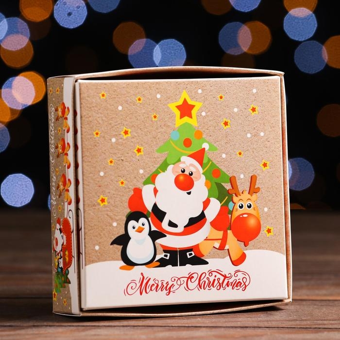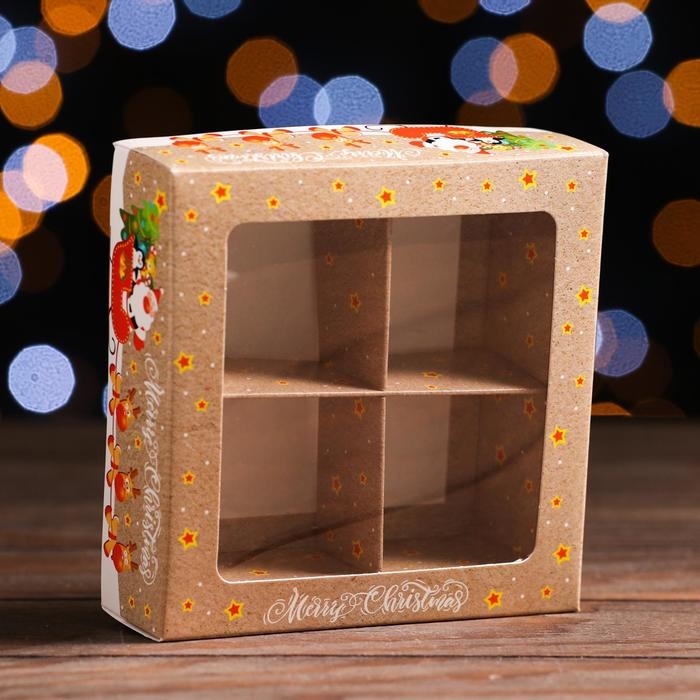 Новый год. Коробка для конфет UPAK LAND с обечайкой 4 шт "Помощники санты", 12,6 х 12,6 х 3,5 см