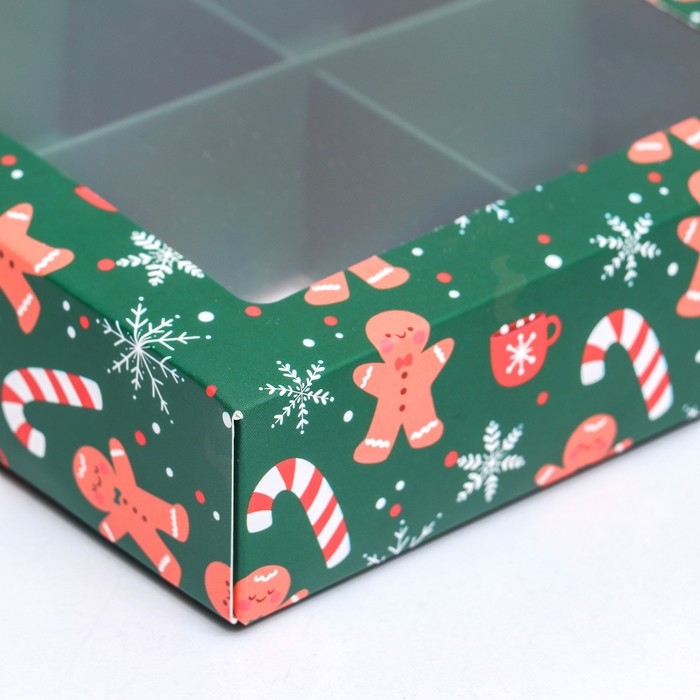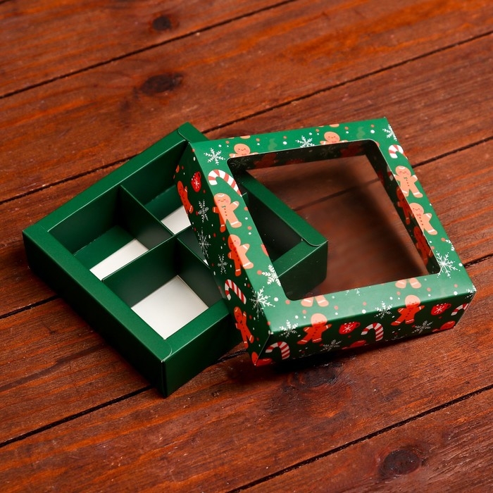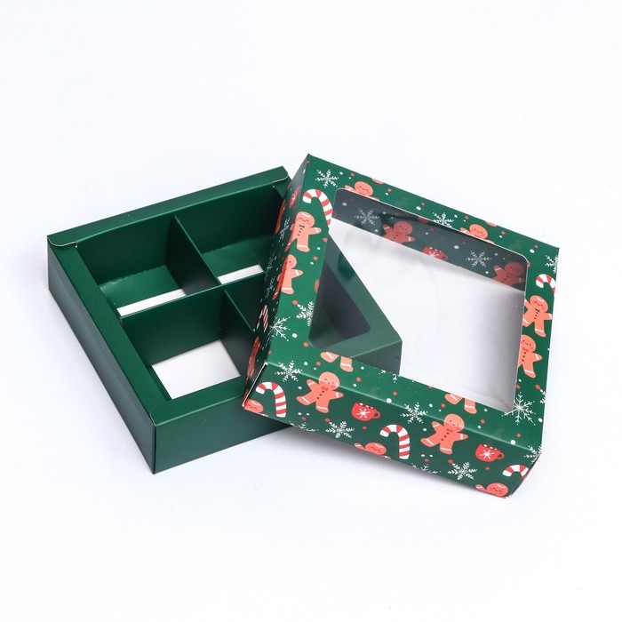Новый год. Коробка под 4 конфеты, 12,6 х 12,6 х 3,5 "Имбирный пряник" , кондитерская упаковка