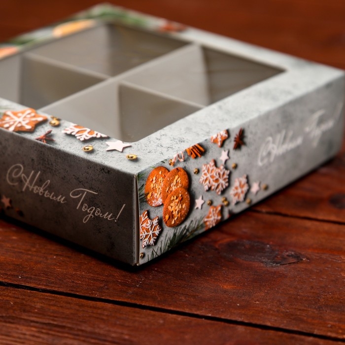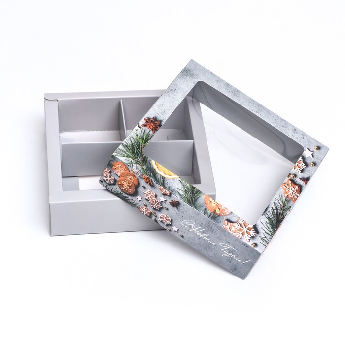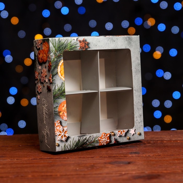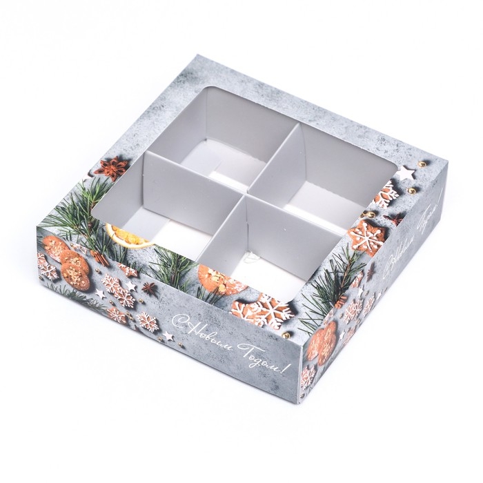 Новый год. Коробка под 4 конфеты, 12,6 х 12,6 х 3,5 "Пряный" , кондитерская упаковка