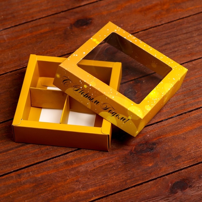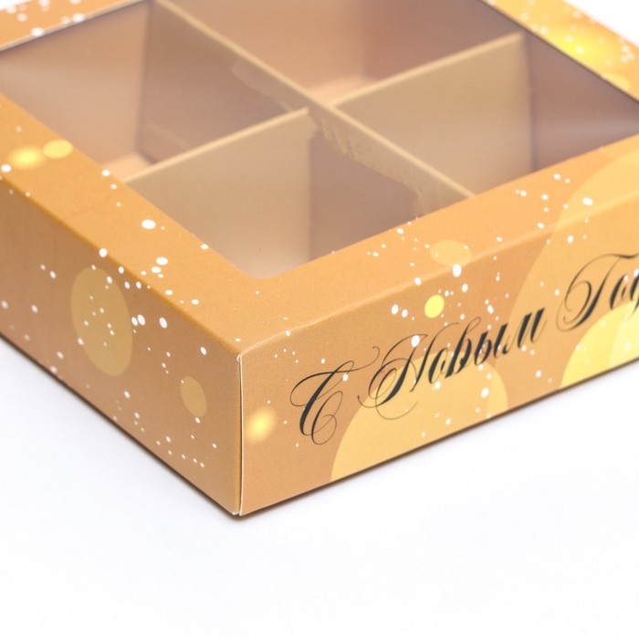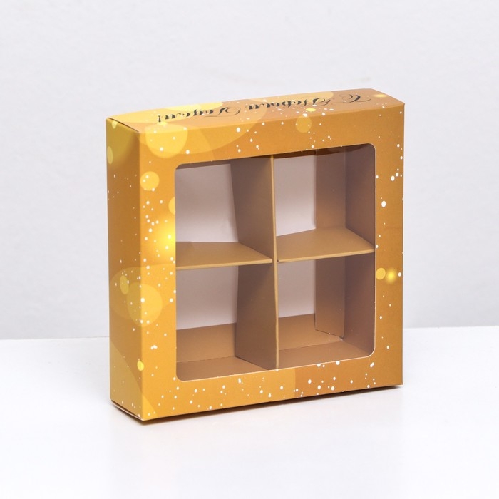 Новый год. Коробка под 4 конфеты, 12,6 х 12,6 х 3,5 "С Новым годом!" , кондитерская упаковка