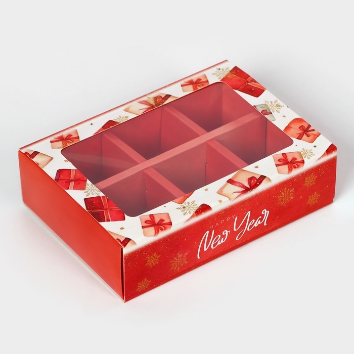 Коробка под 6 конфет "Новогодняя" размером 13,7 х 9,8 х 3,8 см - это прекрасный выбор для упаковки сладостей к празднику. Она выполнена в ярких новогодних цветах, что создает атмосферу праздника и волшебства.