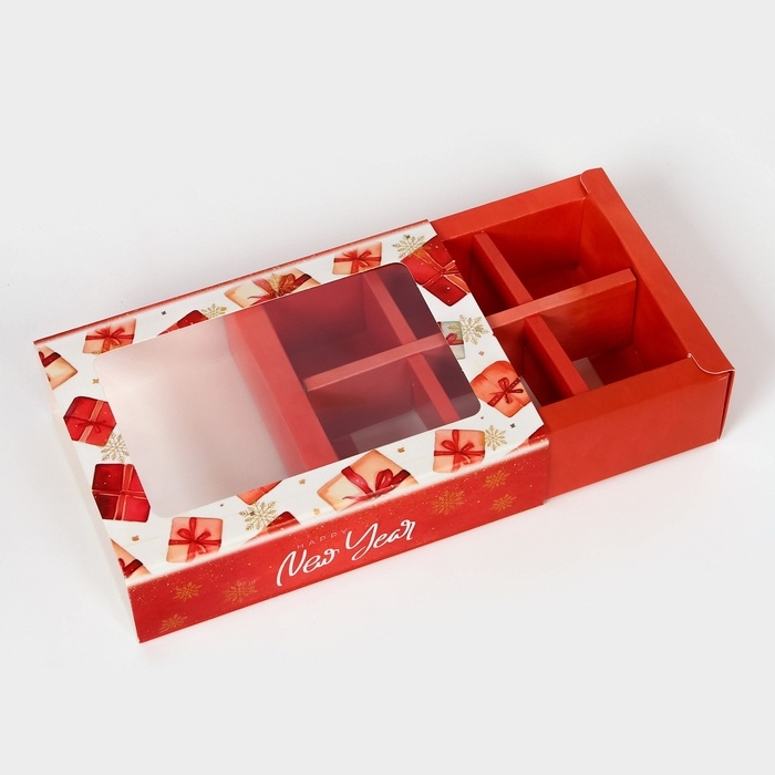 Новый год. Коробка под 6 конфет "Новогодние подарки", 13,7 х 9,8 х 3,8 см, кондитерская упаковка