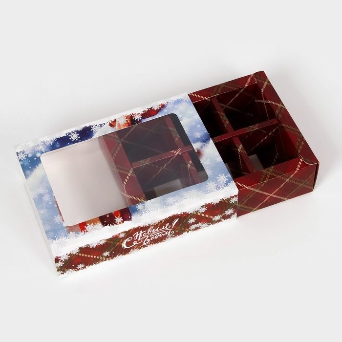 Коробка под 6 конфет "Новогодняя" размером 13,7 х 9,8 х 3,8 см - это прекрасный выбор для упаковки сладостей к празднику. Она выполнена в ярких новогодних цветах, что создает атмосферу праздника и волшебства.