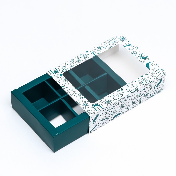 Коробка под 8 конфет + шоколад, с окном, белая, 17 х 5 х 17,5 х 3,7 см