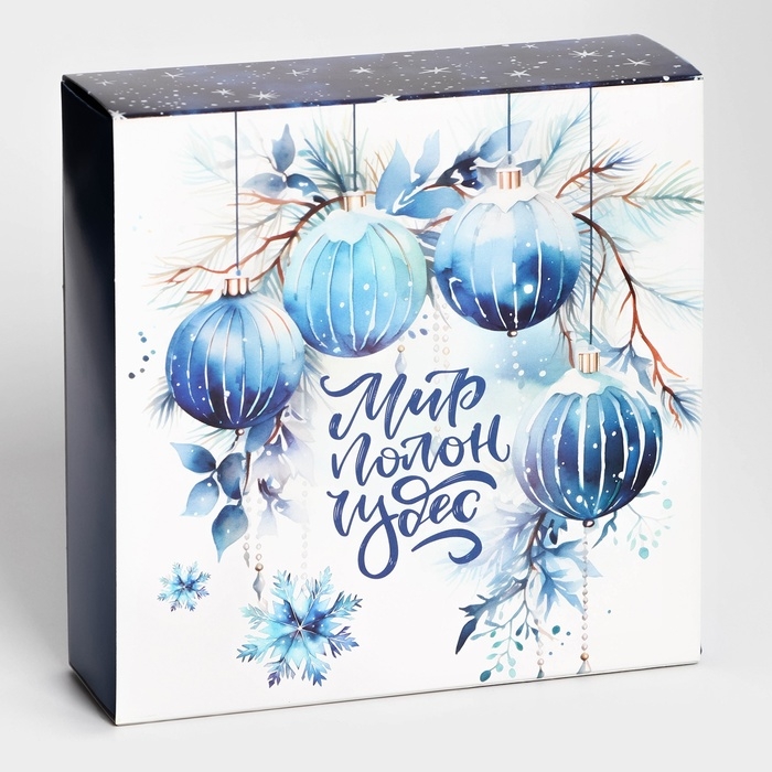 Новый год. Коробка под 9 конфет "Мир полон чудес", 13,8 х 13,8 х 3,8 , кондитерская упаковка