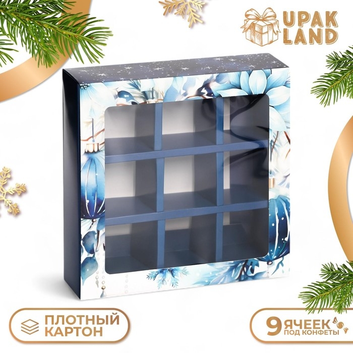 Эта новогодняя подарочная коробка для конфет – идеальный вариант для создания праздничного настроения и приятных сладких сюрпризов. С размерами 13,8 х 13,8 х 3,8 см, она вмещает ровно 9 конфет, что делает её компактной и аккуратной, но в то же время способной подарить массу удовольствия.