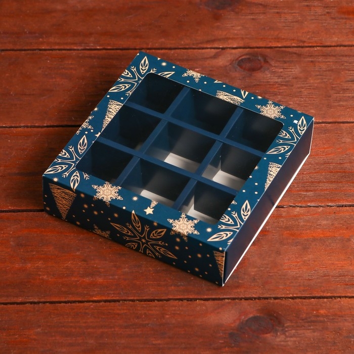 Новый год. Коробка под 9 конфет "Праздничное волшебство", 13,7 х 13,7 х 3,5 см, кондитерская упаковка
