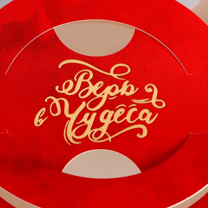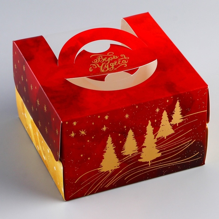 Новый год. Коробка под бенто-торт с окном с тиснением "Верь в чудеса", 15,5 х 15,5 х 10 см