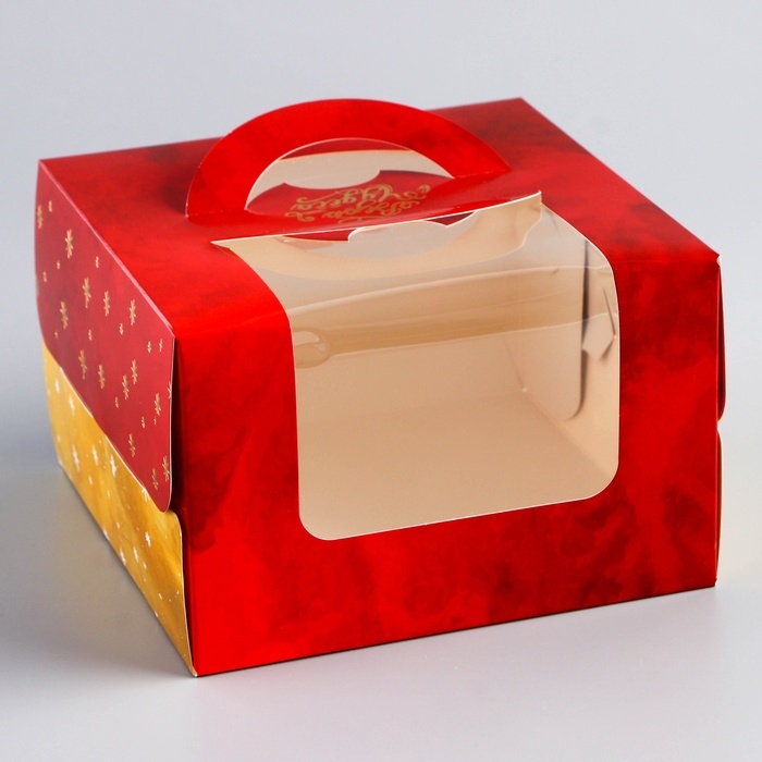 Компактный размер коробки делает её идеальной для порционных тортов, а праздничное оформление — отличным выбором для подарка, новогодних мероприятий или продаж в кафе и кондитерских.