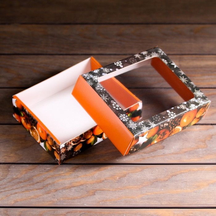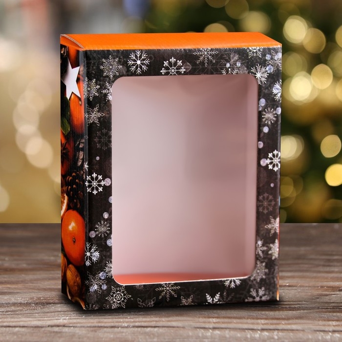 Новый год. Коробка подарочная, крышка-дно, с окном "С Новым Годом", 18 х 15 х 5 см.
