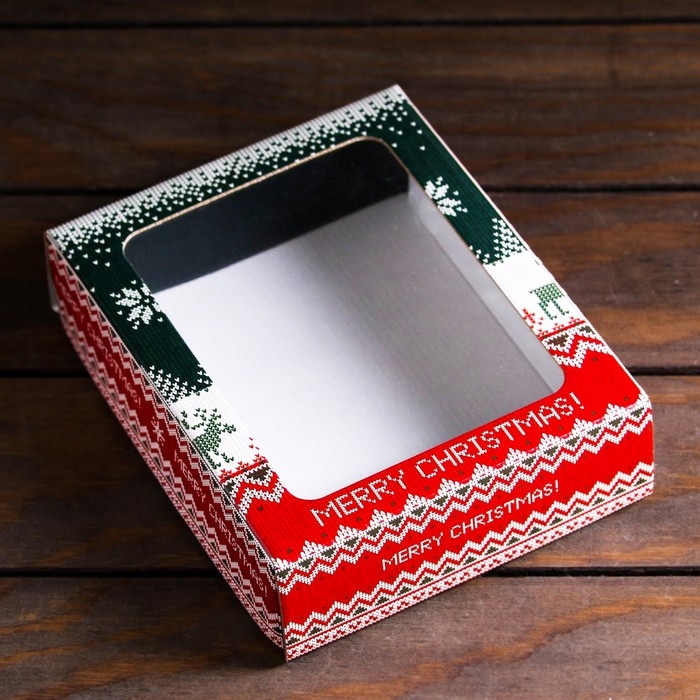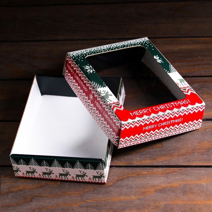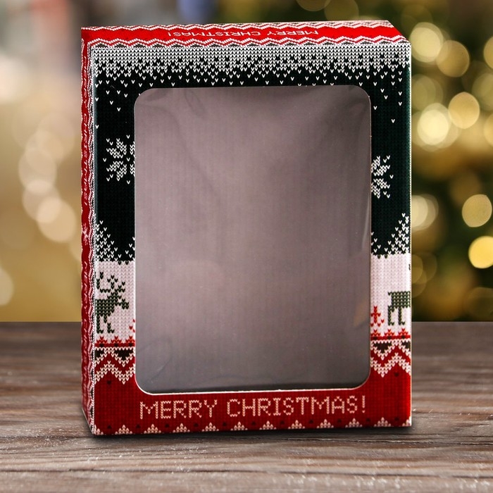 Новый год. Коробка подарочная, крышка-дно, с окном "Скандинавия", 18 х 15 х 5 см.